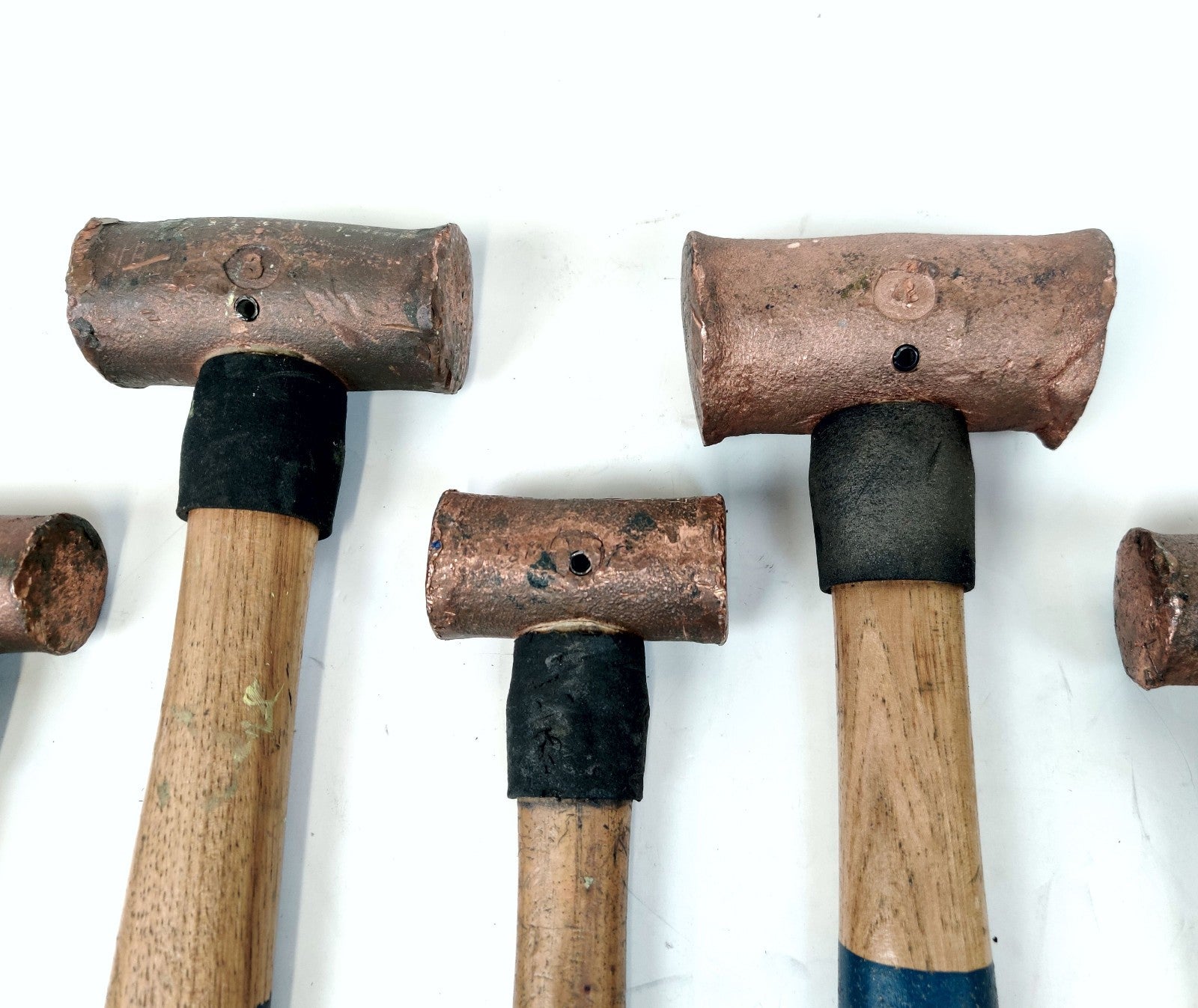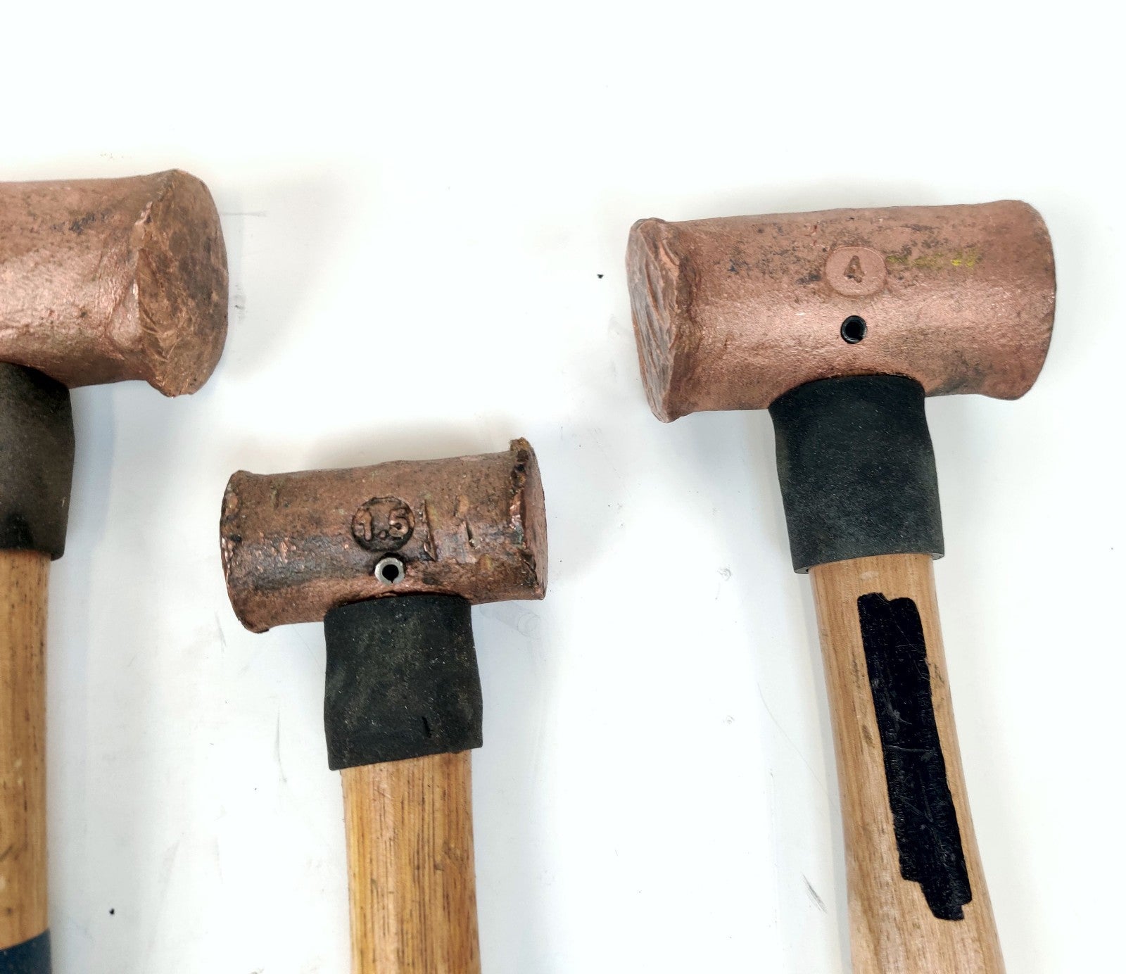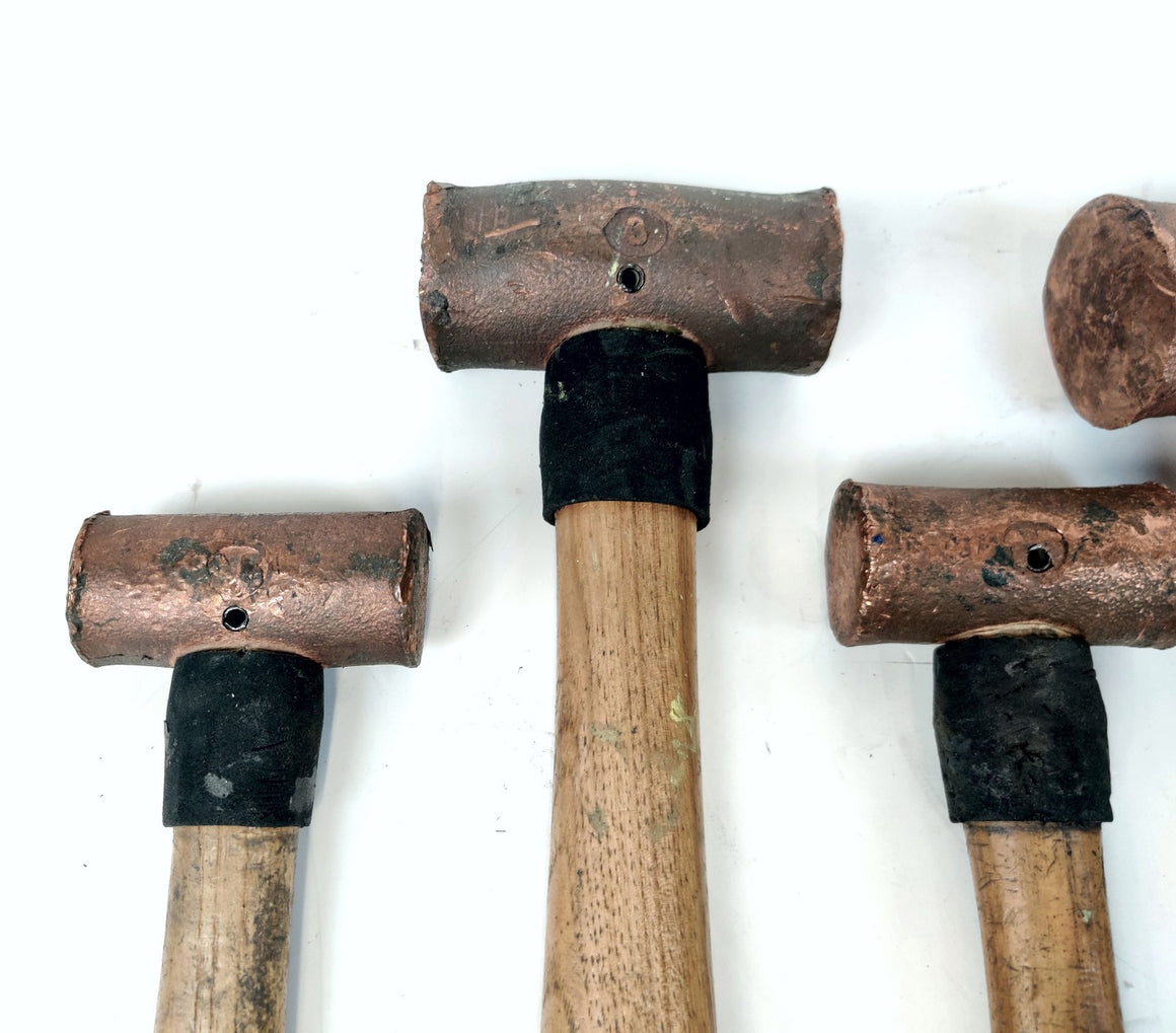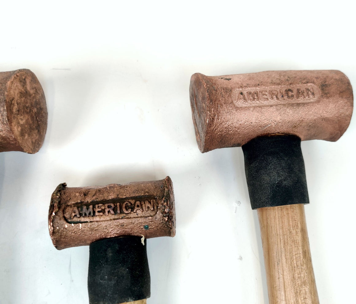 American Yellow Copper hammers 3 lb, 4 lb, and 1.5 lb w/ Wooden Handles