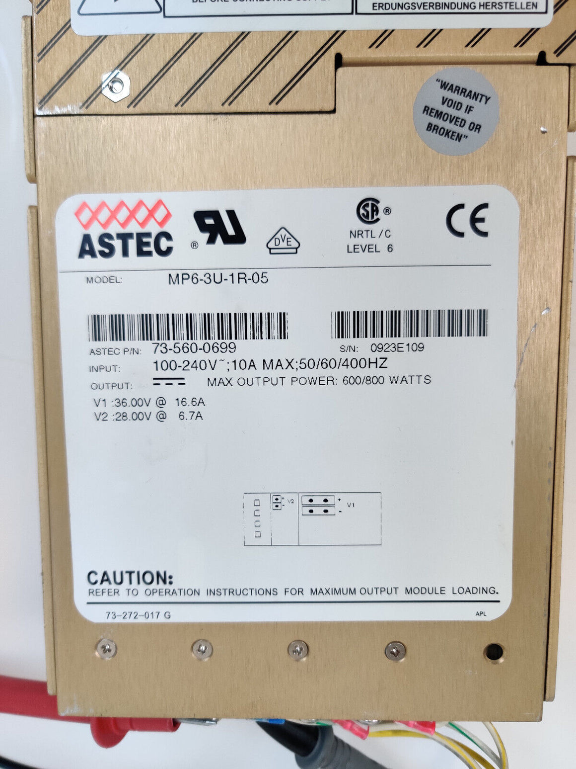 Astec 73-560-0699 800W Power Supply for Thermo TSQ Quantum MS, MP6-3U-1R-05