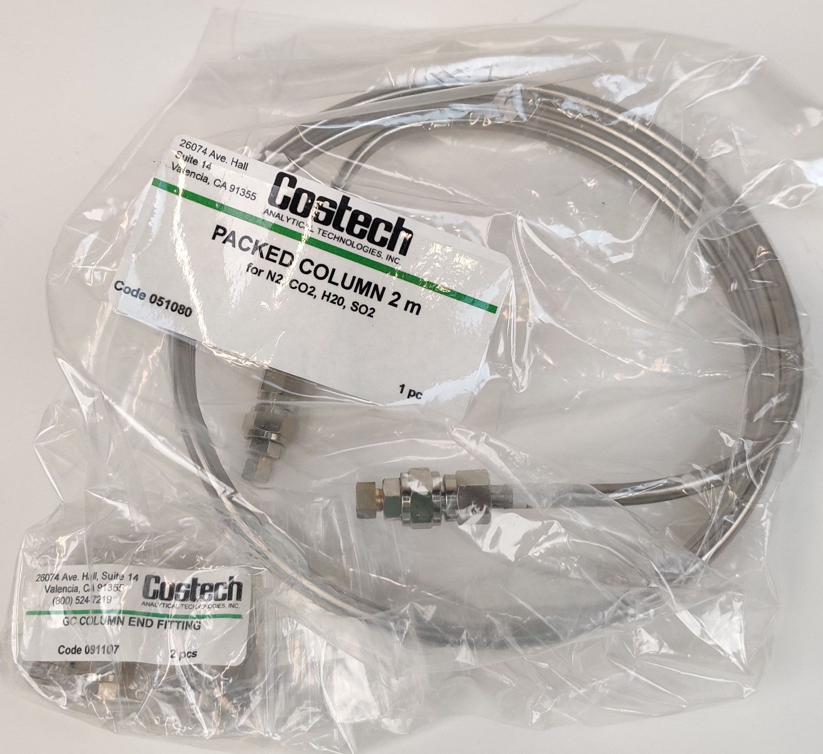 Costech 051080 Separation Column SS 2m w 091107 End Fittings for N2, CO2, H20, SO2 for Thermo, PerkinElmer, Costech, Euovector CHNS/O Elemental Analyzer