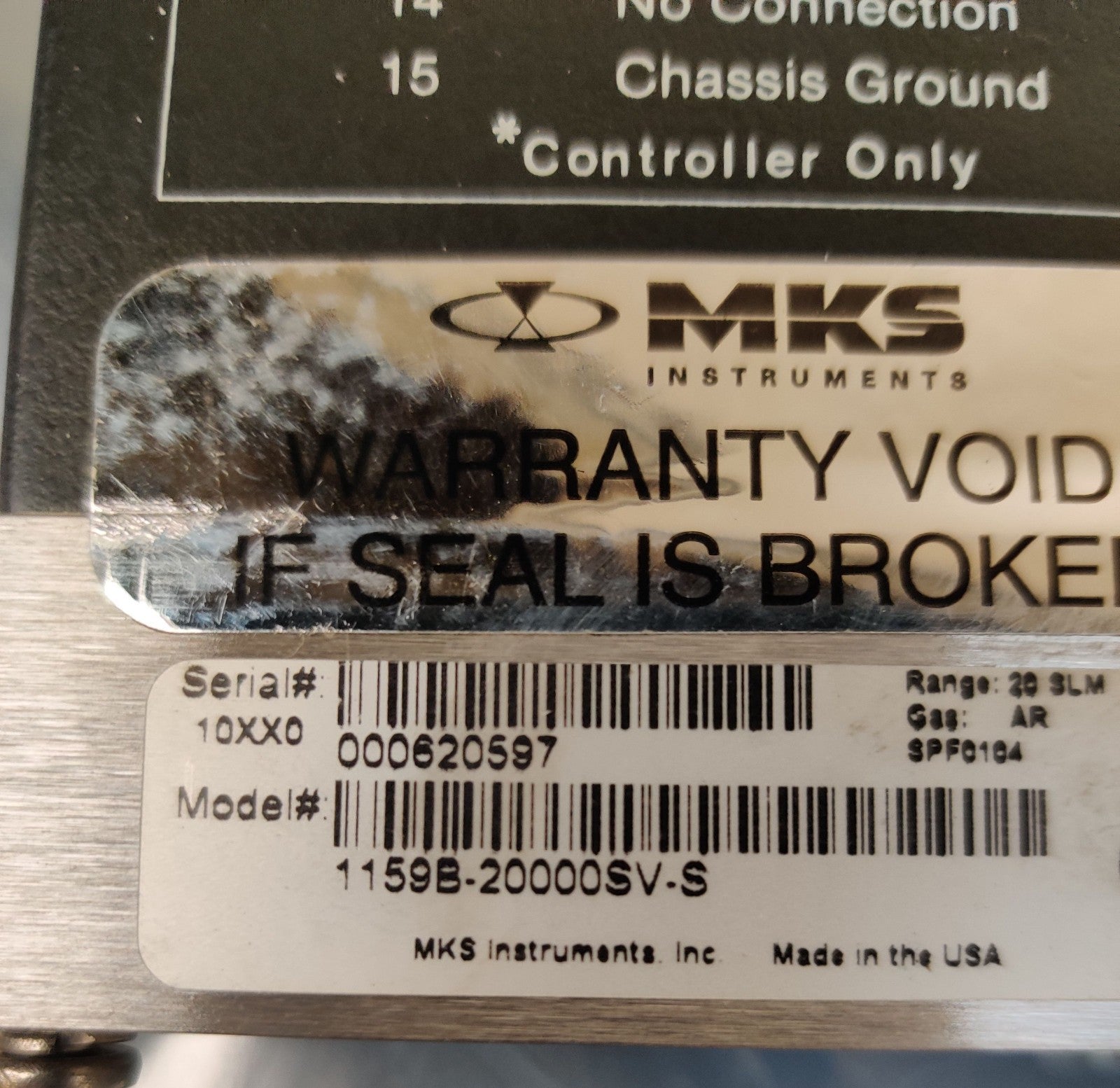 MKS 1159B Mass Flow Controller 1159B-20000SV-S, 20 SML Ar (Argon) Working