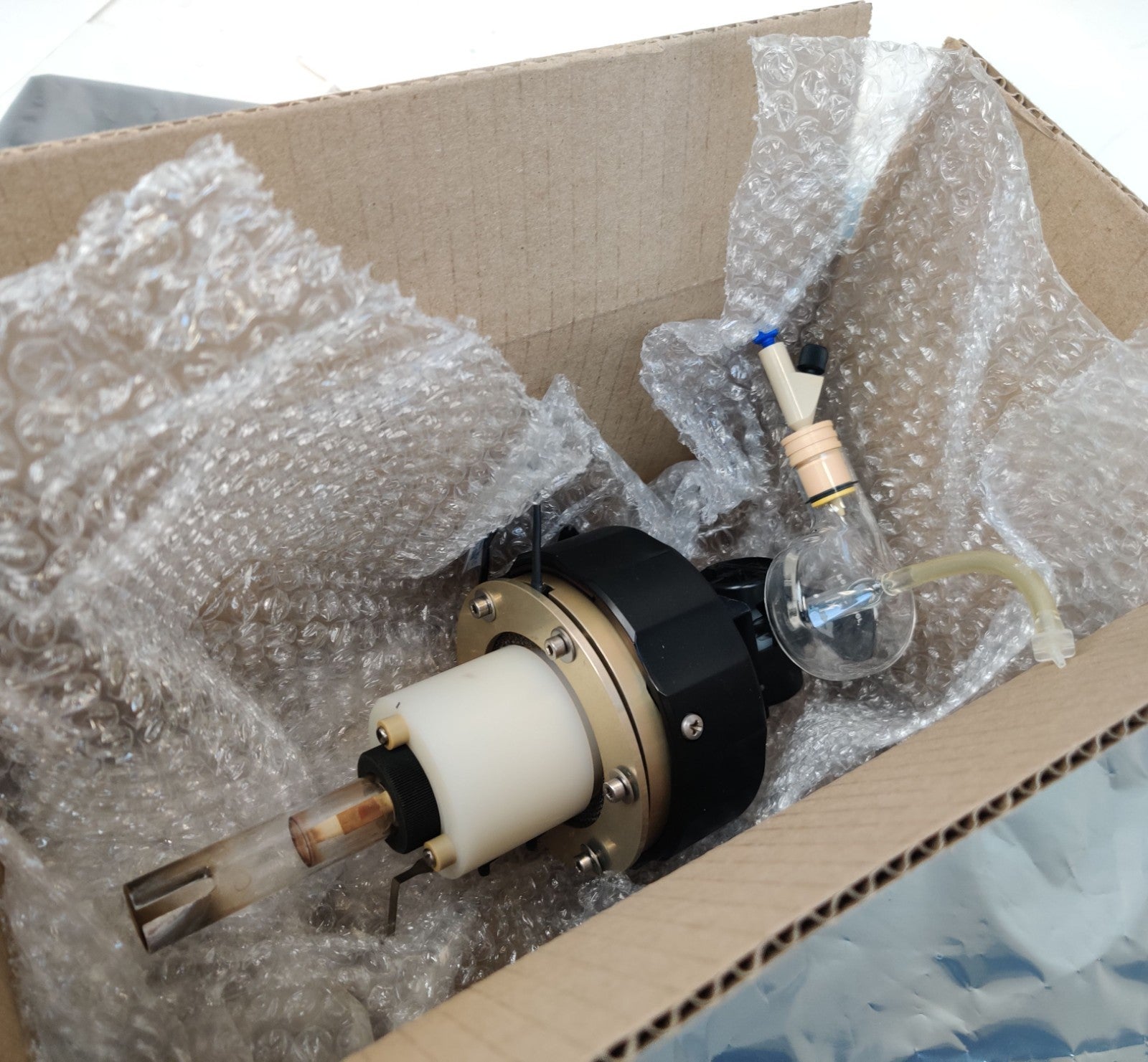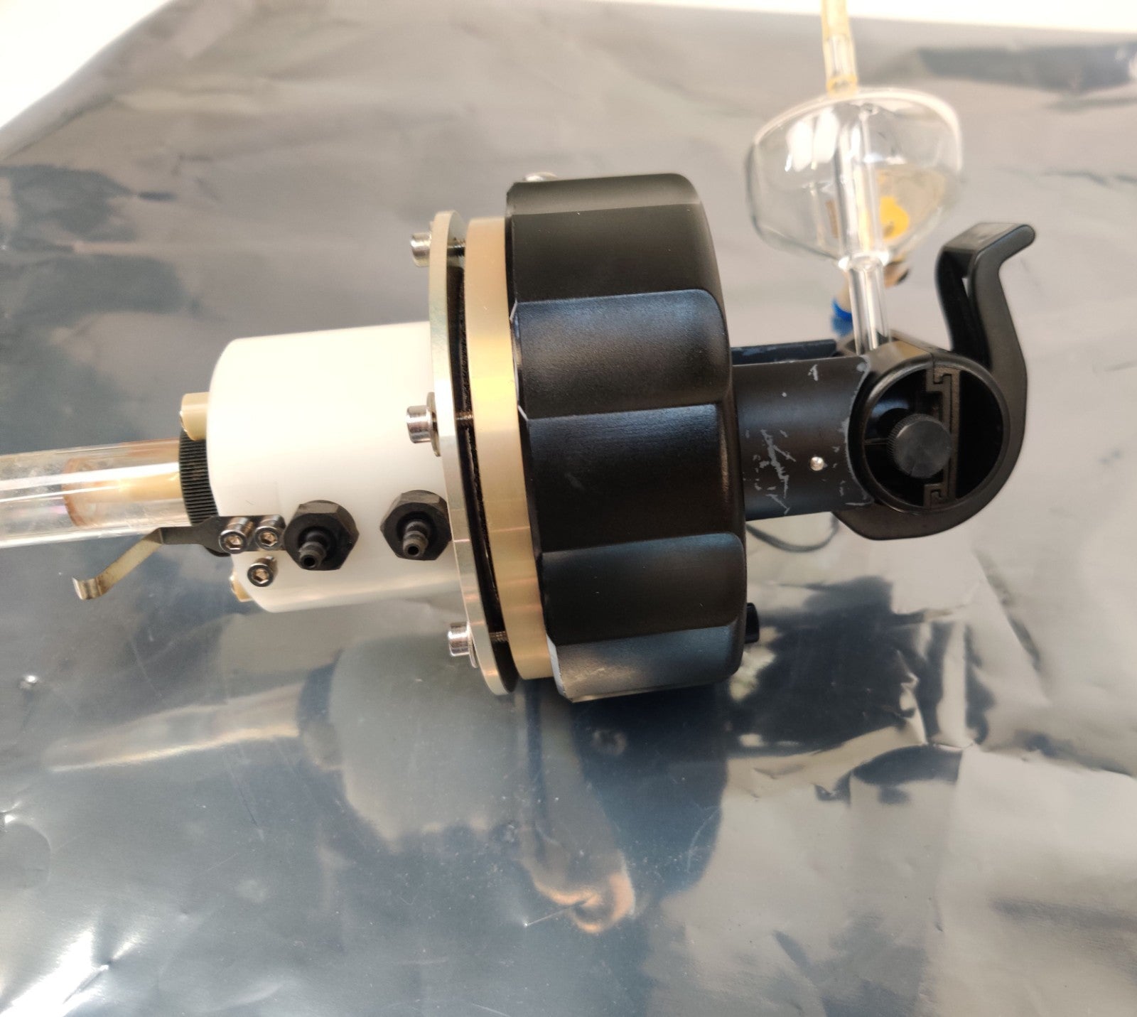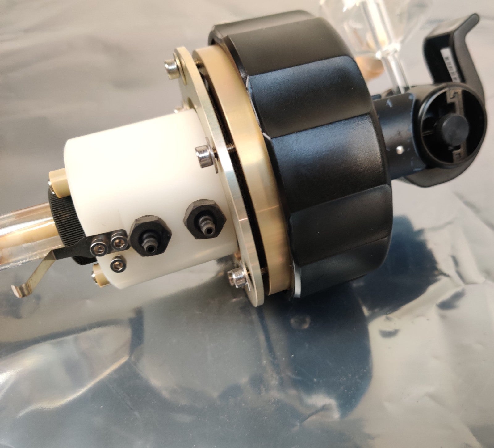 PerkinElmer Optima ICP OES Torch Mount Assy with Torch Glass and N0770605 Cyclonic Spray Chamber w/ Gemcone Neb Working