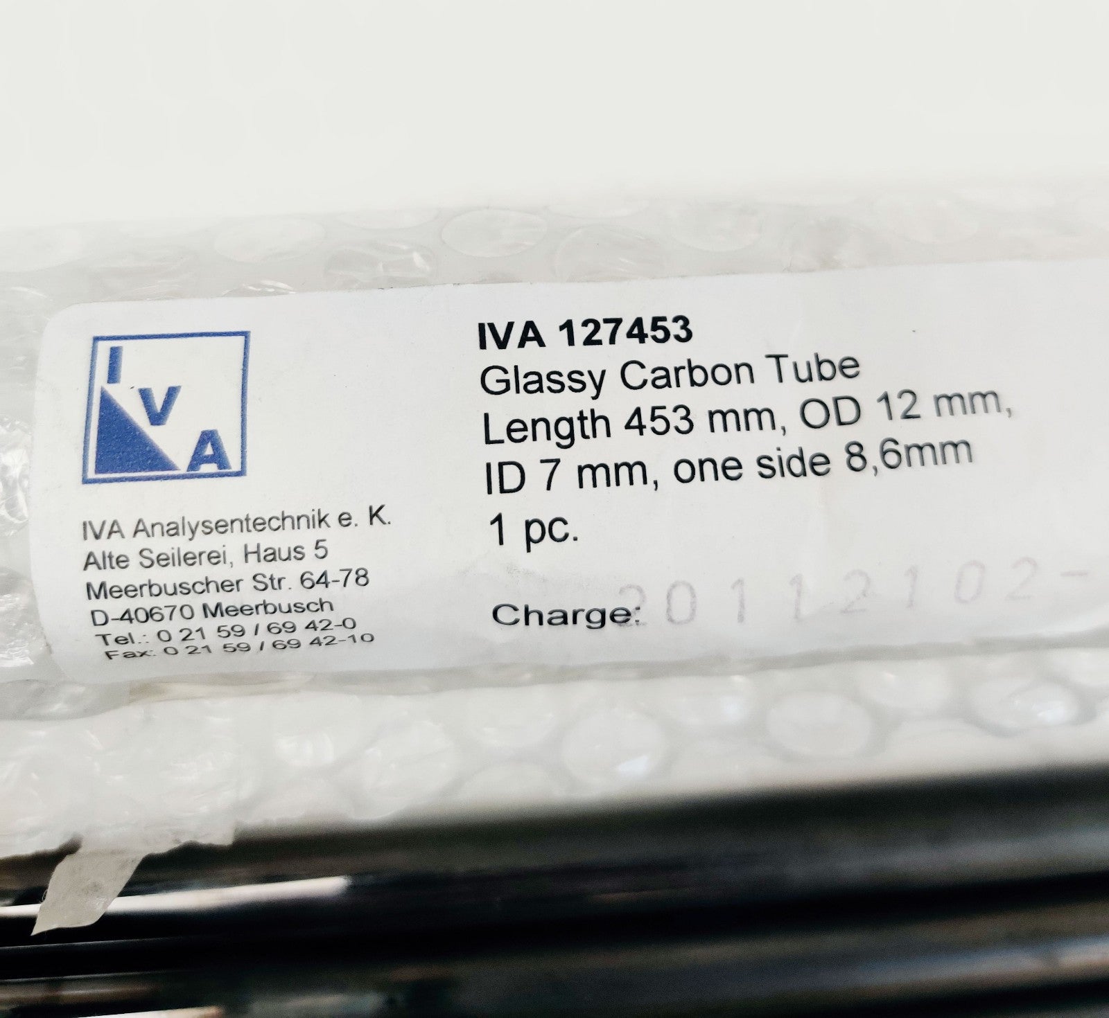 Thermo EA 1112 Flash 2000 IVA127453 Glassy carbon reactor, OD 12 mm, ID 7 mm (alternative with ID 8,6 mm), L= 453 mm