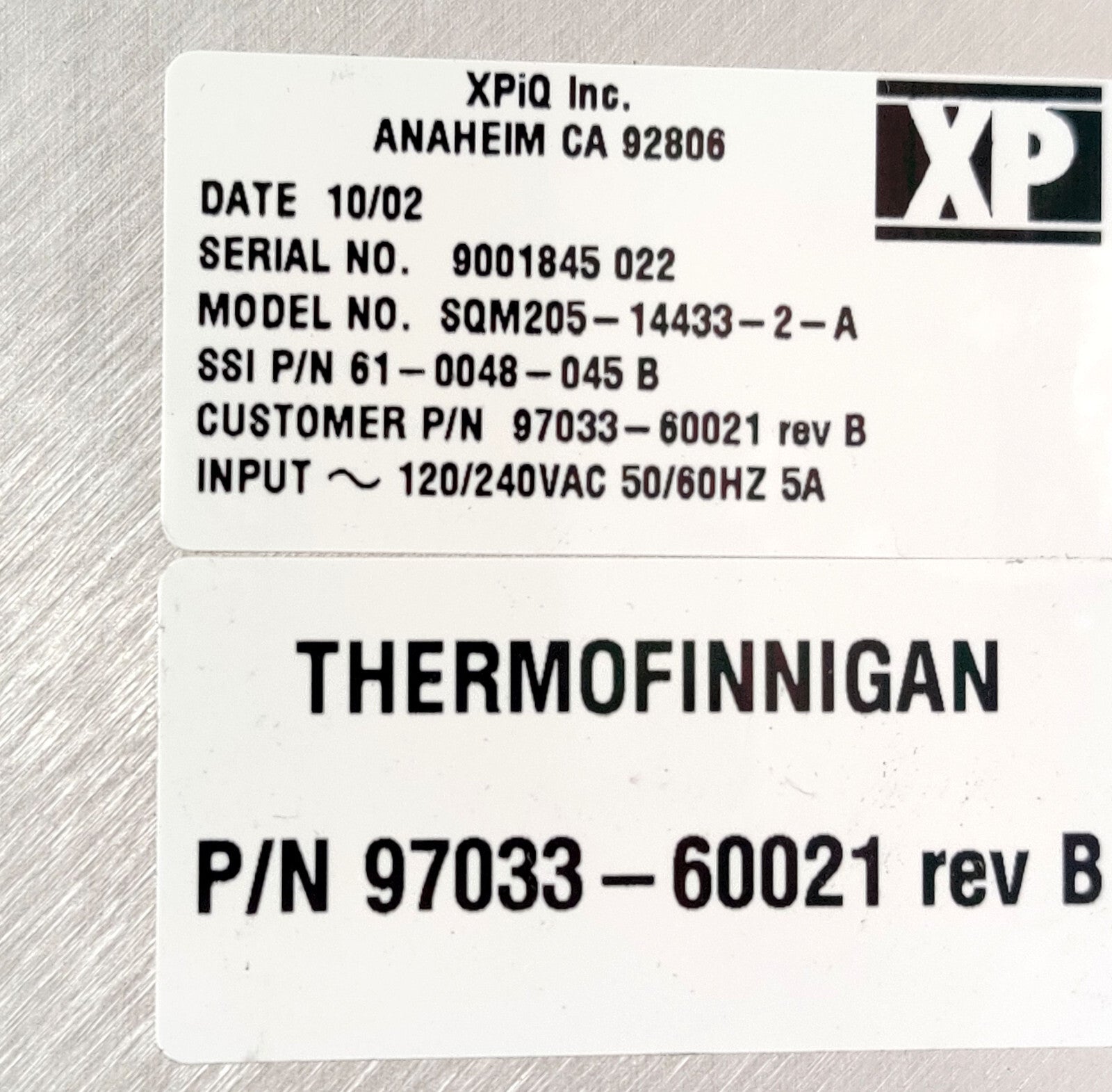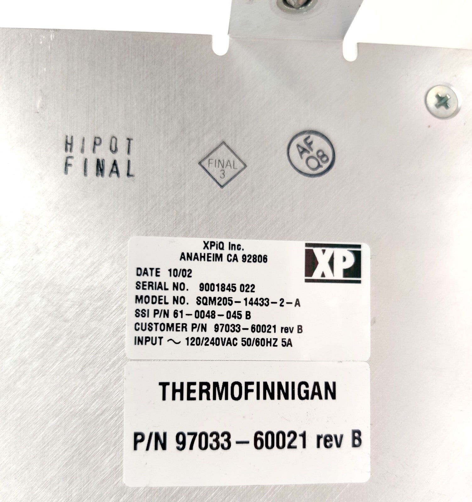 Thermo LCQ Mass Spectrometer 00012-24221 Switching Power supply 120/240VAC 5A