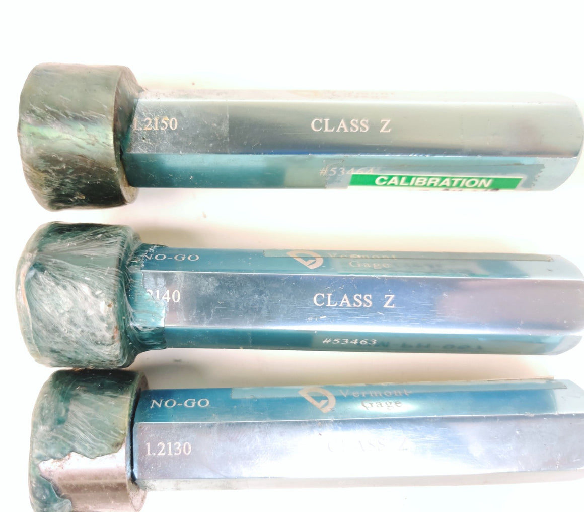 Vermont Gage Plug Gage Set Class Z 1.2150, 1.2140, 1.2130 NO-GO Tool