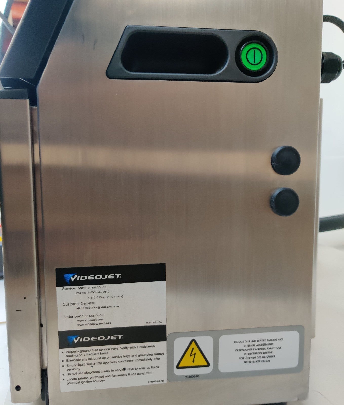 VideoJet 1520 Inkjet Coding Printer Machine w TubeWriter 360 Labeling System with Printhead, Umbilical Cable, Tray, Spacer, and accessories.