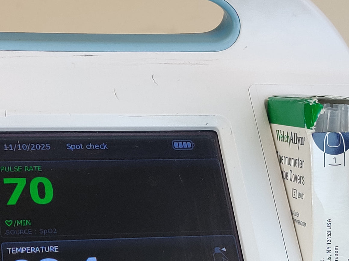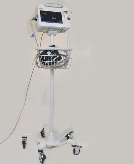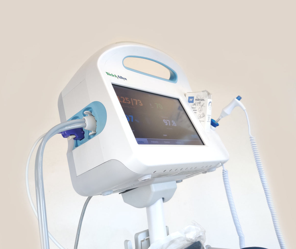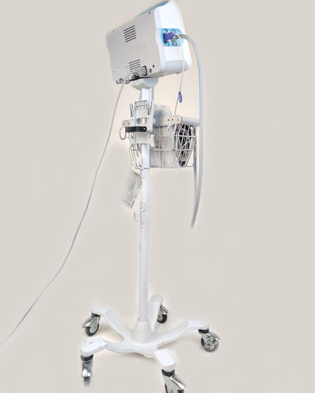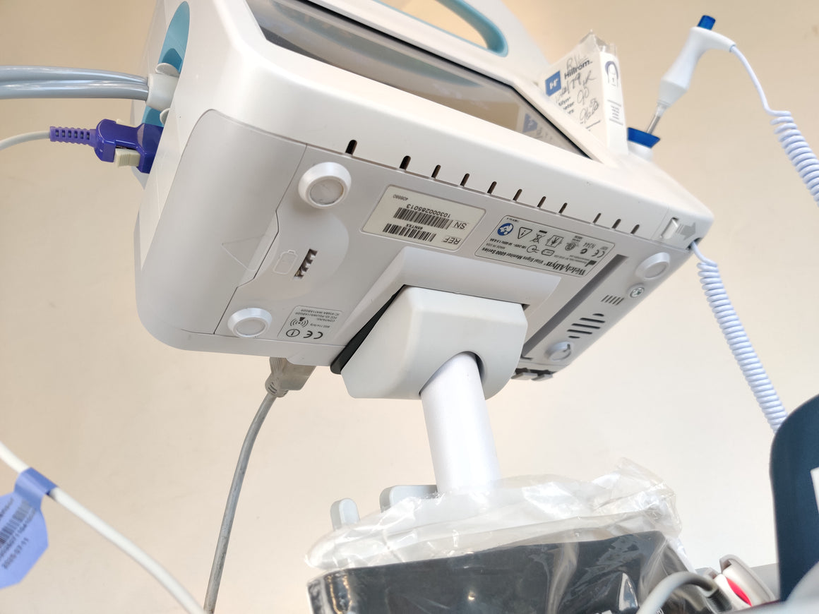 Used, excellent working condition, monitors are in excellent condition, it comes with a working battery, a basket with wear as shown in pictures, and accessories are included. This device can communicate via wireless to an EMR.